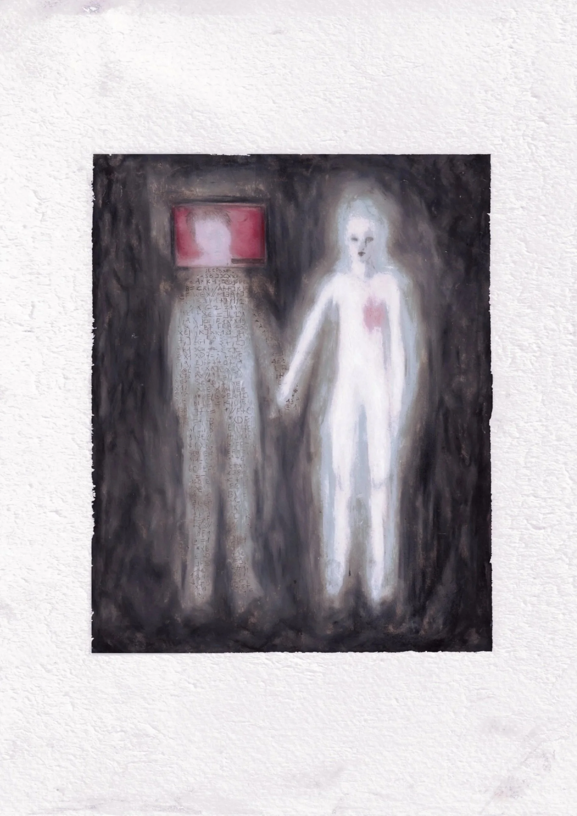 In parallel, I created a series of oil pastel paintings titled Digital Love. This work extends the reflection on attachment, projection, and emotional bonds in the digital age.